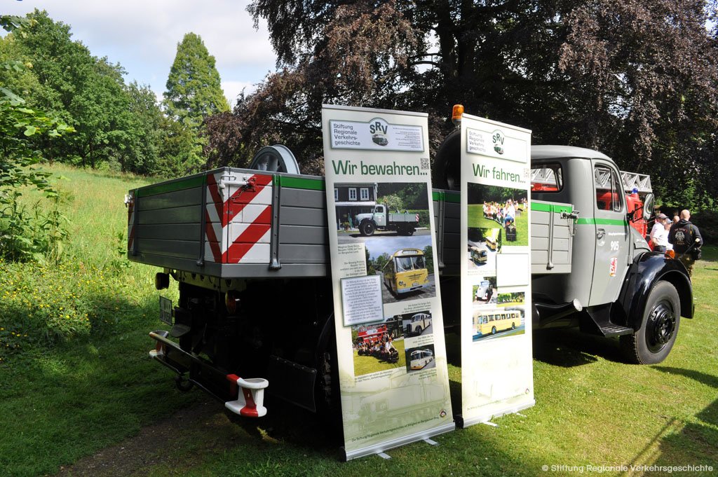 Aus diesem Anlaß führten wir einen historischen Oldtimerbusverkehr als Zubringer vom Barmer Bahnhof durch. So konnten im komfortablen 20-Minuten Takt die Fahrgäste bequem die Höhe erklimmen. Vor Ort war die Stiftung mit dem Lkw 905 präsent.
