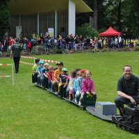 Zum Kindertag am 27.06.2014 war die Kindereisenbahn zu Gast im Wuppertaler Zoo. Für den guten Zweck drehte unsere Bahn auf der Wiese vor der Konzertmuschel unermüdlich ihre Runden.