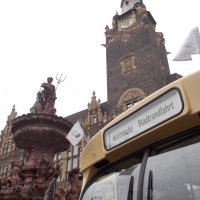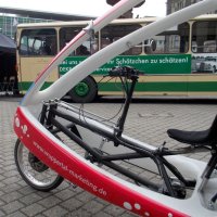 Zur Saisoneröffnung 2016 haben wir am 19. März 2016 unseren Bus 160 auf dem Wuppertaler Neumarkt präsentiert. Gross und klein haben das Fahrzeug ausgiebig inspiziert und sich über unsere Angebote informiert. Ganz im Kontrast zu unserem Oldtimer war auch ein ganz futuristisches Vehikel, das neue Velotaxi des Wuppertal-Marketings, zu bestaunen.